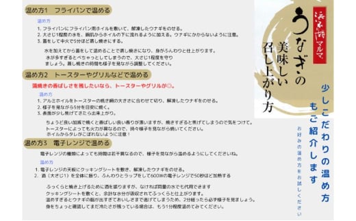 ※袋ごと電子レンジに入れる場合には穴を開けてください。うなぎには、除去できない小骨がありますので注意してお召上がりください。
