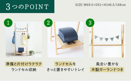 木のガーランドが目を引き、置くだけでお部屋の雰囲気を明るくしてくれるランドセル収納。
