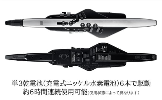 ■主な仕様●キー配列:サクソフォン互換キー配列●音源:ZEN-Core/SuperNATURALアコースティック●パート数:4パート(SuperNATURAL/ドラムは1パート)●プリセット・メモリー:プリセット・シーン…331(Version 2.00)●ユーザー・メモリー:ユーザー・シーン…600/フェイバリット・シーン…12●エフェクト:マルチ・エフェクト/コーラス/ディレイ/リバーブ●コントローラー:ブレス・センサー/バイト・センサー/演奏キー/オクターブ・キー/サム・レバー/サム・パッド/S1/S2 ボタン/シーン・ボタン/メニュー・ボタン/シーン・カテゴリーつまみ/トランスポーズつまみ/MIDIコントロール・スイッチ/モーション・センサー●Bluetooth標準規格Ver 4.2・対応プロファイル:A2DP(オーディオ)、GATT(MIDI over Bluetooth Low Energy)・対応コーデック:SBC(SCMS-T方式によるコンテンツ保護に対応)●ディスプレイ:有機ELディスプレイ 128×32ドット●接続端子:PHONES端子(ステレオ・ミニ・タイプ)/OUTPUT端子(ステレオ標準タイプ)/MIDI(IN/OUT)端子/USB COMPUTER/MEMORY端子(Type-C、AUDIO/MIDI)/DC IN端子●記憶メディア:USBメモリー(Type-C、別売)●スピーカー・アンプ出力:1.5W×2●スピーカー:2.8cm×2●電源:ACアダプター(DC5.7V)/充電式ニッケル水素電池単3形(別売)×6●消費電流:915mA●連続使用時の電池の寿命(使用状態によって異なります):充電式ニッケル水素電池…約6時間(容量1,900mAh使用時)※マンガン乾電池、アルカリ乾電池は使用不可●●別売品:交換用マウスピース(OP-AE05MPH)