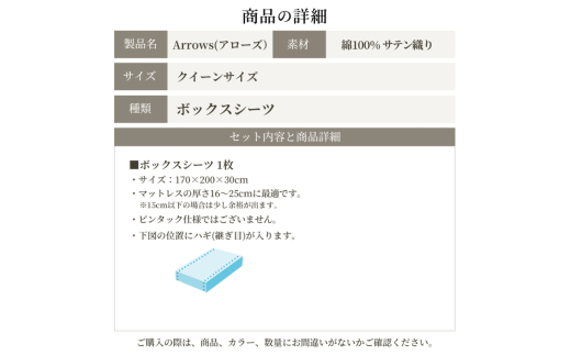 製品:ボックスシーツ クイーンサイズ 170×200×30cm