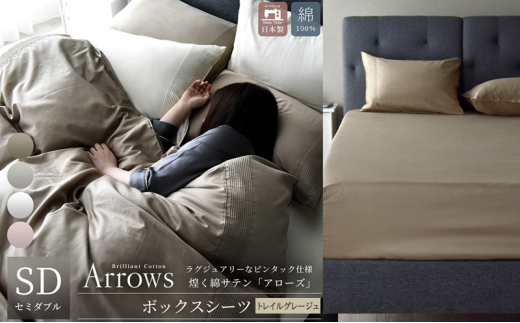 7. 日本製 ボックスシーツ セミダブルサイズ 綿サテン アローズ 「トレイルグレージュ」 [№5786-5814]