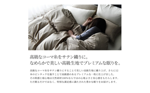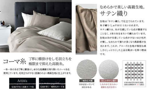 厳選された高級なコーマ糸をサテン織にすることで美しい高級生地に織り上げ、プレミアムな一枚に仕上げました。