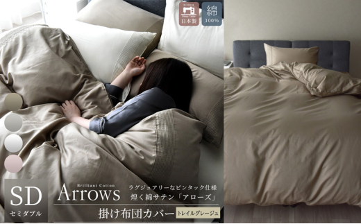 日本製 掛け布団カバー セミダブルサイズ 希少なピンタック仕様 綿サテン アローズ 「トレイルグレージュ」 [№5786-5830]