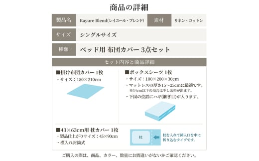 7. 日本製 ベッド用 布団カバー3点セット (掛け布団カバー・ボックスシーツ・枕カバー) シングルサイズ リネン&コットン 綿 麻 レイユール・ブレンド 「インディゴベリー」 寝具 [№5786-5868]