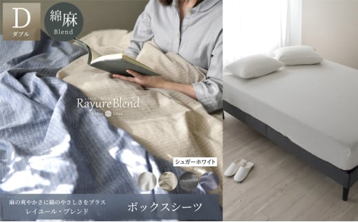 日本製 ボックスシーツ ダブルサイズ リネン&コットン 綿 麻 レイユール・ブレンド 「シュガーホワイト」 寝具 [№5786-5897]