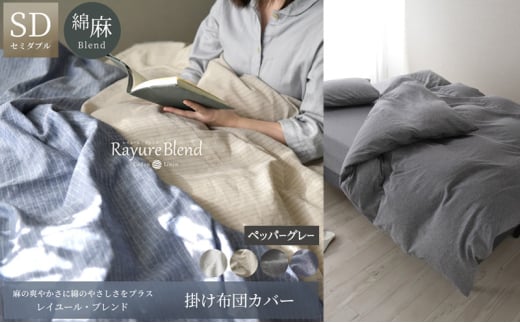 日本製 掛け布団カバー セミダブルサイズ リネン&コットン 綿 麻 レイユール・ブレンド 「ペッパーグレー」 寝具 [№5786-5911]