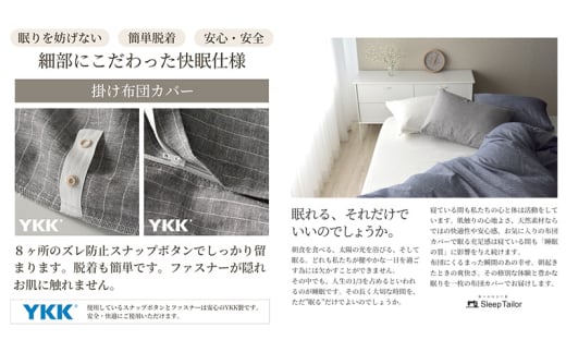 麻55%、綿45%の混紡糸で織られたレイユール・ブレンドは、麻の持つ肌離れの良い清涼感と、綿の優しいぬくもりを併せ持つ贅沢な布団カバーです。