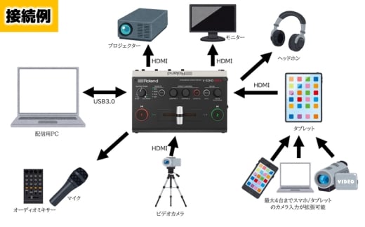 出力: HDMI × 2(プログラムアウト、プレビューアウト)、USB-C
