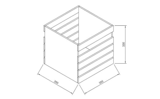 サイズ:本体/縦350mm横350mm高さ330mm 蓋/縦370mm横370mm/高さ60mm ※本体裏側ゴム脚付き