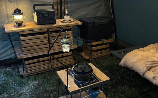 キャンプに持ち運ぶ際、スペースを節約することができます。さらに、収納BOX自体がゴミ箱としても利用できるので、テントの中を綺麗に保つこともできます。高品質の素材(タモ材)を使用しているので、長くご使用いただけます。