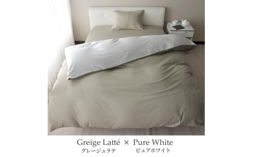 綿100% 和晒製法ダブルガーゼ ベッド用 布団カバー3点セット セミダブルサイズ グレージュラテ×ピュアホワイト 静岡 浜松市 [№5360-0429]