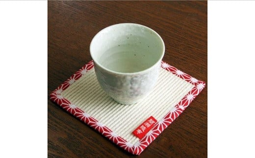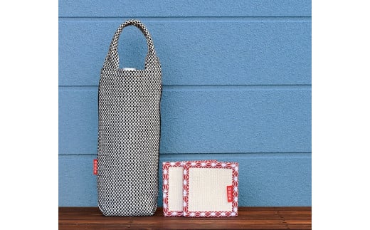 豊橋産刺し子生地を使用したワインボトルバッグとコースターをセットにしてご用意しました。