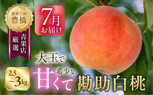 1玉300g程度と大玉で甘みが強く、みずみずしさが自慢の勘助白桃!