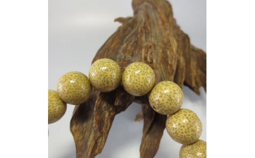 『星月菩提樹』はその表面の黒く見える細かい点模様が特徴です。古来よりその模様を『月と星』に例え、1粒で空(宇宙)を表していると言われております。仏教の一説にも最も功徳が高い素材だといわれており現在でも星月菩提樹の数珠を愛用される方が多くおられます。