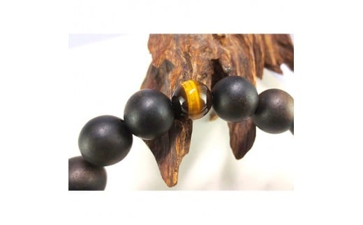 男性用数珠 国産 黒柿 虎眼石仕立 正絹房/ 桐箱入り【1056933】