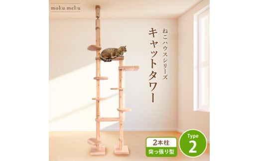 <ねこハウスシリーズ>天井突っ張り型キャットタワー 杉と桧の無垢材 TYPE2無垢柱仕様 基本セット_キャットタワー 猫 ねこ ネコ 突っ張り型 2本柱 突っ張り 組立 杉 スギ 桧 ヒノキ 無垢材 ペット ペットグッズ 猫用品 ペット用品 家具【1468223】