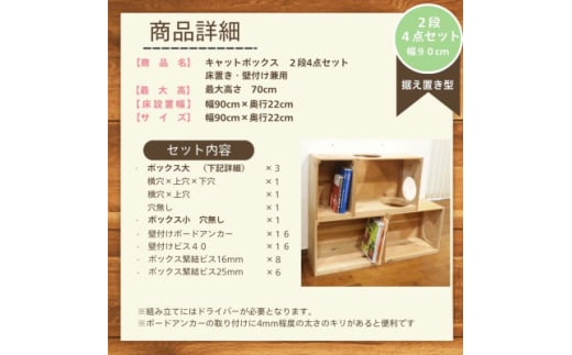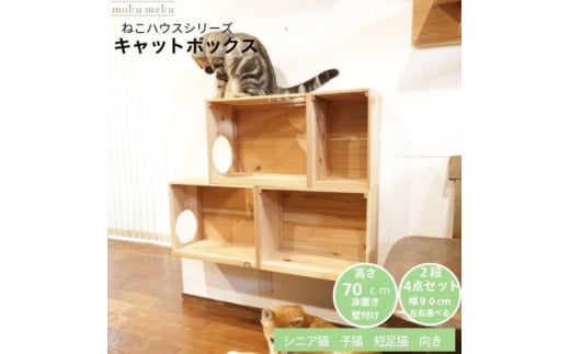 ・ボックスセット2段4点セット(右上がり)[重量 約10kg キャットボックス大×3個 キャットボックス小×1個]