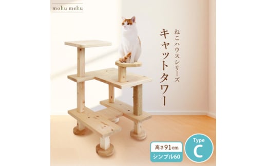 <ねこハウスシリーズ>キャットタワー シンプル60シリーズTypeC 上がりやすいキャットタワー【1563441】