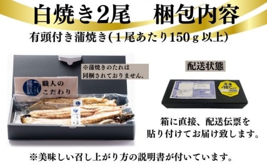 有頭うなぎ白焼き 2尾(1尾150g以上)、美味しいお召し上がり方の説明書