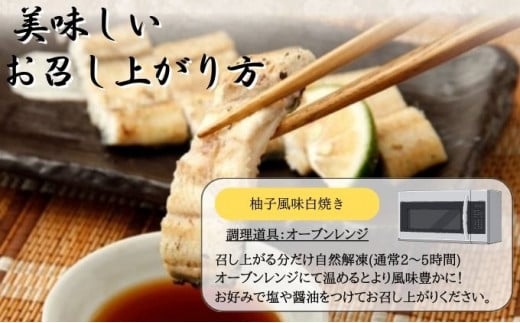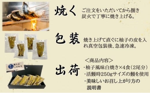 内容量:刻み柚子風味白焼き4食(2尾分)、美味しいお召し上がり方の説明書