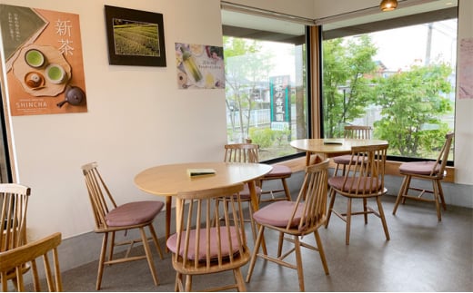 お茶カフェで抹茶と和菓子のセットや、抹茶ソフトクリームなどを味わっていただけます。
