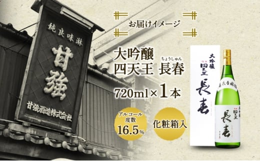 7. [№5830-0270]四天王 大吟醸 長春 720ml 1本 日本酒 お酒 酒 晩酌 さけ 山田錦 フルーティー 上品 キレ 人気 贈答用 自家用 プレゼント ギフト 贈り物 お取り寄せ ご褒美 送料無料 甘強酒造 愛知県 蟹江町