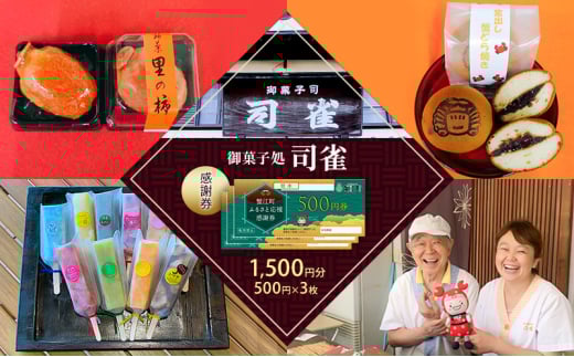 7. [№5830-0415]感謝券【御菓子処 司雀】 感謝券 1,500円分 菓子 和菓子 和スイーツ チケット 愛知 蟹江町