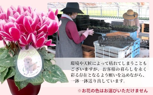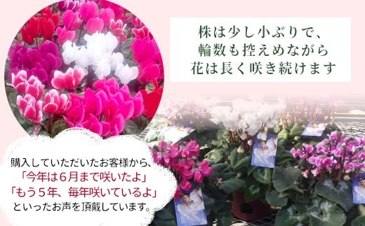 奥三河の冬を彩る花「シクラメン」おすすめの色をお届けいたします