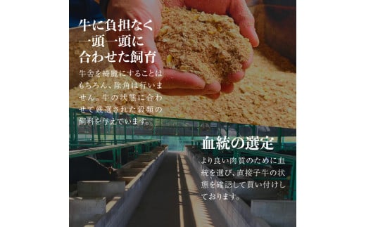 その舌触りの秘訣は肥育方法にあり、長期肥育をすることで脂肪の溶け出す温度が低い、柔らかいお肉になるのです。