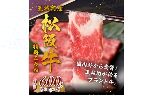 玉城町産 松阪牛特選こうね 600g(300g×2P)(肉 牛肉 松阪牛 国産 特選 こうね ブリスケ 希少部位 贅沢 すき焼き 冷凍 ミライエ 小林牧場 炒め物 牛丼 誕生日 お祝い 記念日 家庭用 三重県 玉城町)