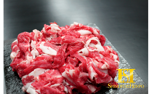 当店は、切り落としと、小間切れの二つの商品があります。切り落としは、主に、モモやカタロースのネックの部分でスライスでは、少し見た目が悪いところを切り落としとしています。小間切れは、スライスでは切れなくなった端を集めスネやバラを組み合わせ細かくしています。さまざまなお料理にお使い下さいませ。