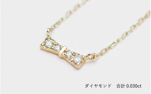 キュートなリボンデザインに仕上げたK10イエローゴールドダイヤモンドネックレス