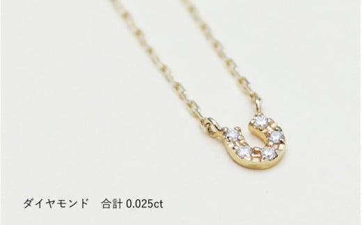 ラッキーモチーフ馬蹄デザインのK10イエローゴールドダイヤモンドネックレス