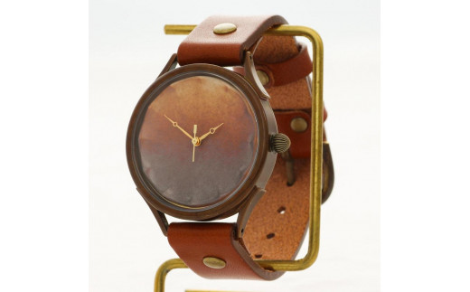 【信楽焼】で作る陶器の文字盤 ハンドメイドウォッチ 伝統工芸品 文字盤:茶 ベルトカラー:茶 WJ010X 茶-茶