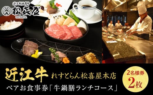 れすとらん松喜屋本店ペアお食事券「牛鍋膳ランチコース」×2