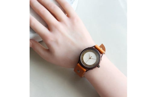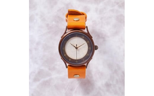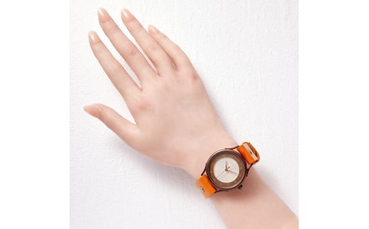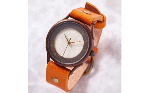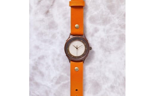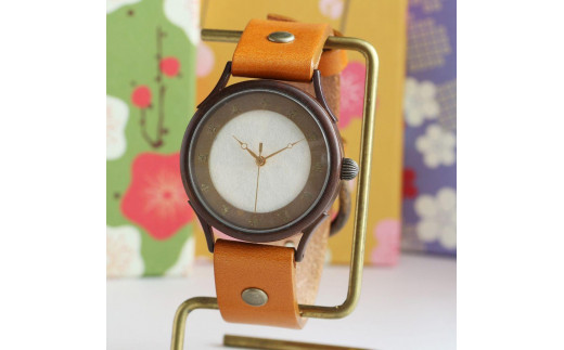 伝統工芸品【本美濃紙】の文字盤が美しい手作り腕時計 干支インデックス ベルトカラー:蜜柑 WJ001L 本美濃紙-蜜柑