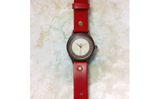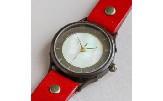 ・螺鈿(らでん)白 ハンドメイドウォッチ バーインデックス ベルトカラー:赤 1本