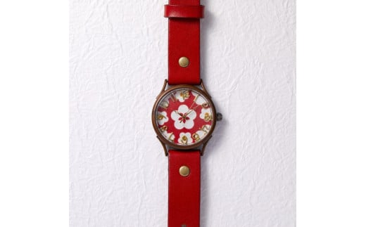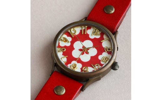 ・和染千代紙 ハンドメイドウォッチ 文字盤:梅 ベルトカラー:赤 1本
