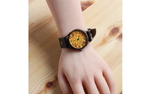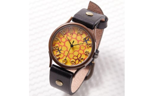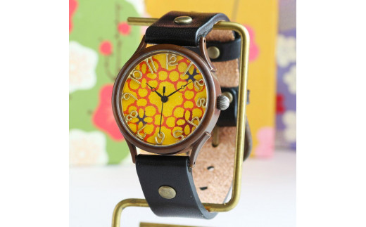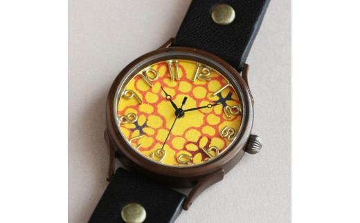 ・和染千代紙 ハンドメイドウォッチ 文字盤:花黄 ベルトカラー:黒 1本