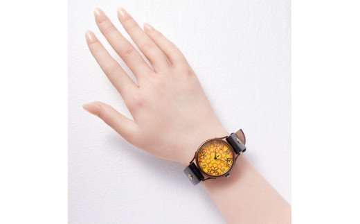 伝統工芸文様【花黄】の文字盤が美しい 和染千代紙で作ったハンドメイドウォッチ ベルトカラー:黒 WJ004L 花黄-黒