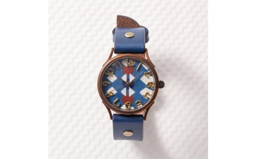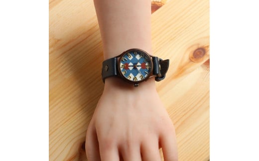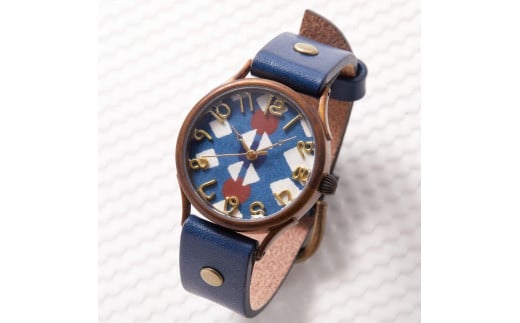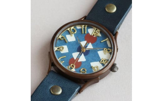 伝統工芸文様【数珠】の文字盤が美しい 和染千代紙で作ったハンドメイドウォッチ ベルトカラー:茄子紺 WJ004L 数珠-茄子紺