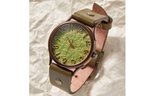 【金彩銀彩】で彩る上品な「黄緑」が美しいハンドメイドウォッチ 伝統工芸品 ベルトカラー:オリーブ WJ008L 黄緑-オリーブ