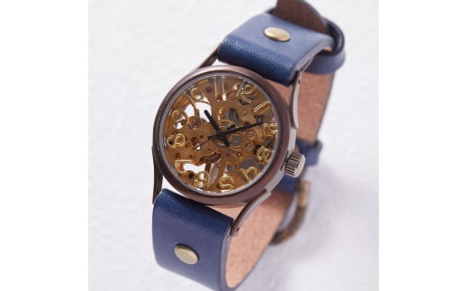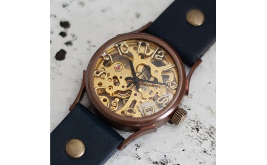 【機械-手巻き式】歯車の音色と動きが美しいハンドメイドウォッチ スケルトン ベルトカラー:茄子紺 WB044 茄子紺