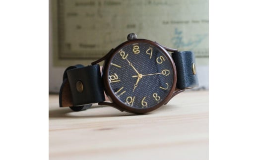 【インディコブルーデニム】の文字盤が可愛いハンドメイドウォッチ Lサイズ ベルトカラー:茄子紺 WB063L 茄子紺