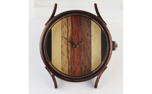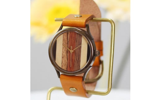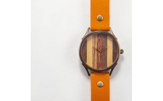 【5種類の天然樹木】を組み合わせた文字盤のハンドメイドウォッチ Lサイズ ベルトカラー:蜜柑 WB081L 蜜柑