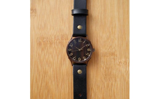 ナチュラルウッド【黒檀こくたん】で作る文字盤が魅力的なハンドメイドウォッチ Lサイズ W1 ベルトカラー:黒 WB045L W1-黒