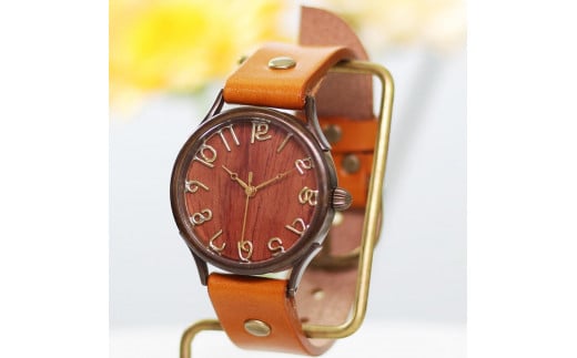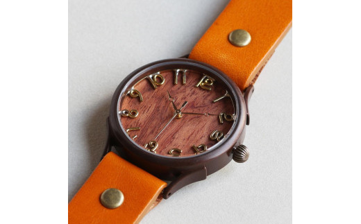 ナチュラルウッド【ブビンカ】文字盤が美しいハンドメイドウォッチ LサイズW2 ベルトカラー:蜜柑 WB045L W2-蜜柑