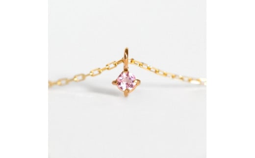 K10イエローゴールド 天然石ネックレス【10月誕生石ピンクトルマリン】上品な華奢見え 長さ40cm K10-05-10 / 金 ゴールド ジュエリー アクセサリー ギフト プレゼント レディース シンプル 定番