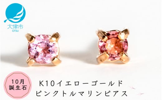 【10月誕生石ピンクトルマリンピアス】K10イエローゴールド 美しい天然石のスキンジュエリー 両耳セット / K10-06-10