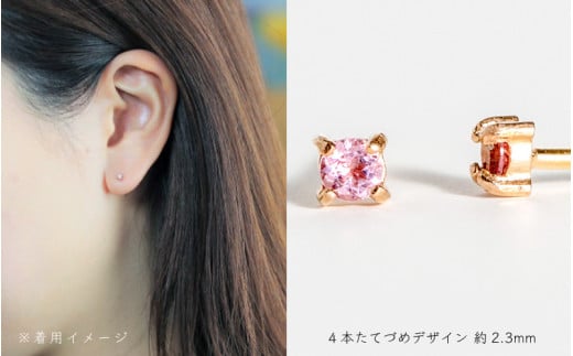 10月誕生石ピンクトルマリンのK10イエローゴールドピアス キャッチ付左右セット
